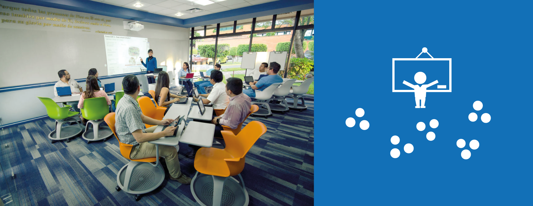 La transformación de todas las aulas tradicionales de la UMG en espacio formal de aprendizaje, convirtiéndose en un standard para la implementación de los nuevos salones de clases en todos sus Campus.